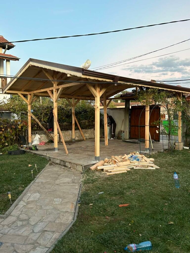 Изграждането на навеси и беседки създава функционални и устойчиви пространства за защита и отдих. Конструкциите се изпълняват с качествени материали и съобразени с мястото.